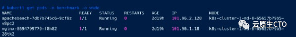 我们可以看到两个pod都在不同的节点上。现在,我们只需在ubuntu pod上安装apache bench,然后运行一个简单的ab测试,即可从单个连接发送100000个请求。