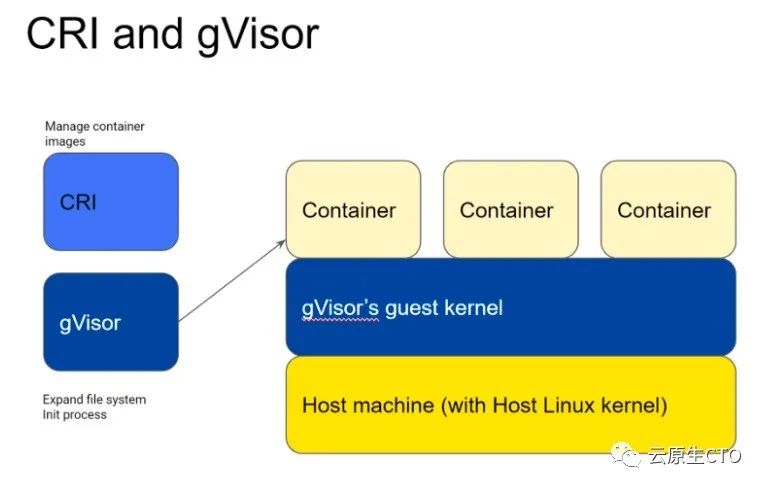 有趣的是,gVisor包含“guest kernel”层,这意味着容器化的应用程序无法直接访问主机内核层。即使应用程序“认为”它已经触摸过它,但实际上它只是gVisor的guest kernel。