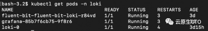 使用来检查loki名称空间中正在运行的Pod kubectl -n loki get pods。你可能会看到loki pod因错误而崩溃