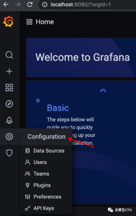 登录后,我们可以将Loki添加为数据源。在左侧面板中,选择配置->数据源