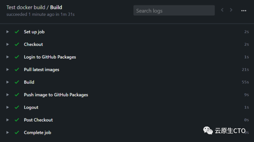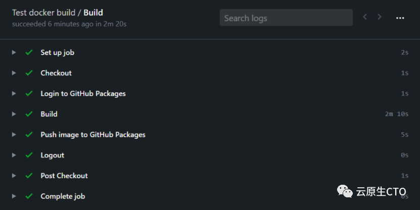 构建镜像并将其推送到GitHub Packages花费了2分20秒: