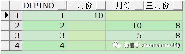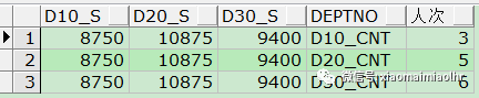 1SELECT * FROM test unpivot(人次 FOR deptno IN(d10_cnt, d20_cnt, d30_cnt));