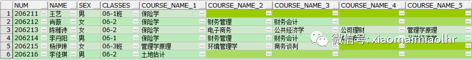25INSERT INTO T_ROW_COL_LHR(NUM,NAME,SEX,CLASSES,COURSE_NAME) VALUES ('206215','杨伊琳','女','06-3班','商务谈判');
