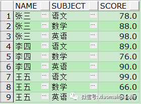 3 SUM(DECODE(SUBJECT, '数学', GRADE, NULL)) "数学",