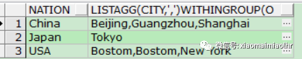 其实,与WM_CONCAT相似的还有一个函数是LISTAGG。这是一个Oracle的列转行函数,使用示例如下所示: