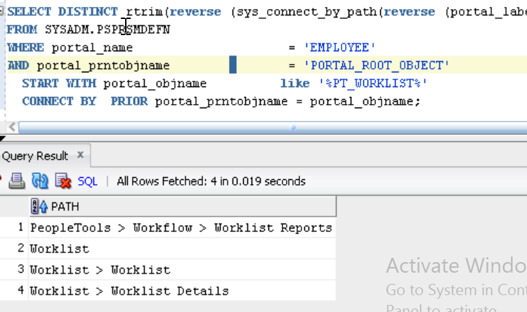CONNECT BY PRIOR portal_prntobjname = portal_objname