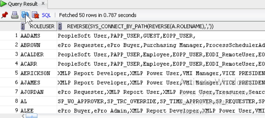 reverse(SYS_CONNECT_BY_PATH(reverse(ROLENAME), ','))