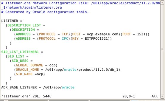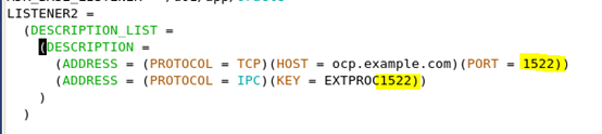 altersystem set local_listener='(ADDRESS=(PROTOCOL=tcp)(HOST=ocp.example.com)(PORT=1522))';