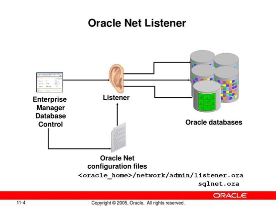 listener.ora,tnsnames.ora和sqlnet.ora这3个文件是关系oracle网络配置的3个主要文件,都是放在oracle\product\11.2.0\server\network\ADMIN目录下, listener.ora是监听,和数据库服务器端相关,tnsnames.ora和sqlnet.ora关系到服务器端和客户端关系,tnsnames.ora涉及客户端连接,sqlnet.ora配置密码。