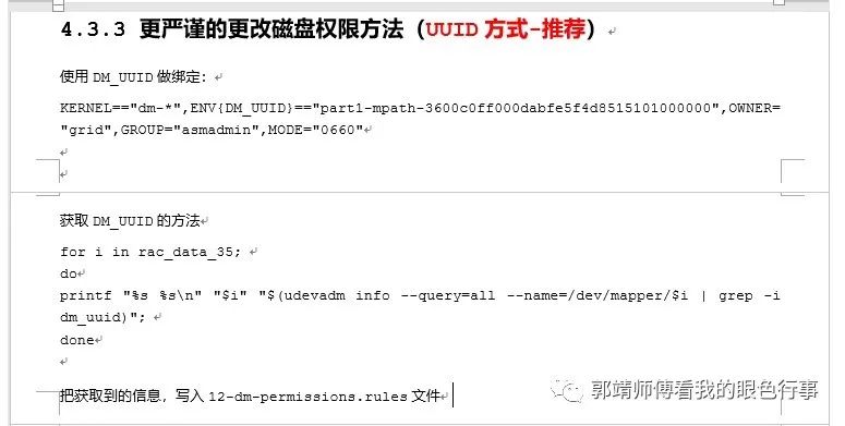 ACTION=="add|change", ENV{DM_UUID}=="mpath-<DM_UUID>", SYMLINK+="udev-asmdisk1", GROUP="oinstall",