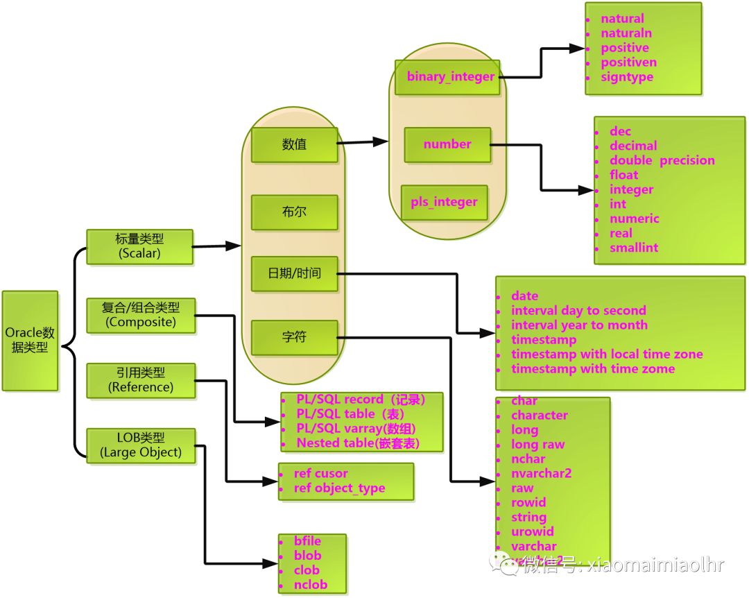 下图是在PL/SQL中可以使用的预定义类型。