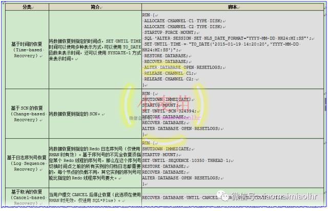 不完全恢复方式 | RMAN选项 | 用户管理备份选项 |