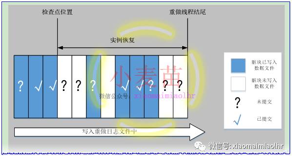 ① 事务提交的数据块只写入联机Redo日志中,没有更新到数据文件(那么未写入数据文件的更新必须重新写入数据文件)。