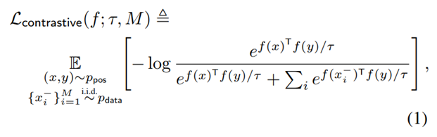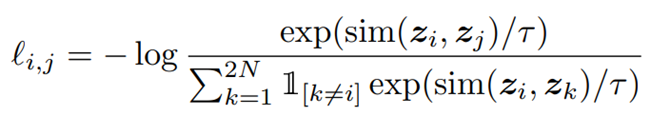 具体而言,对于批大小为N的原始图片数据,对于每张图片,从这些数据增强操作中采样两种对原始图片进行变换,得到2N个数据,其中,由同一张原始图片变换得到的作为正样本,不同图片变换得到的作为负样本。在经过上述编码、投影过程后,使用InfoNCE损失函数计算损失并优化: