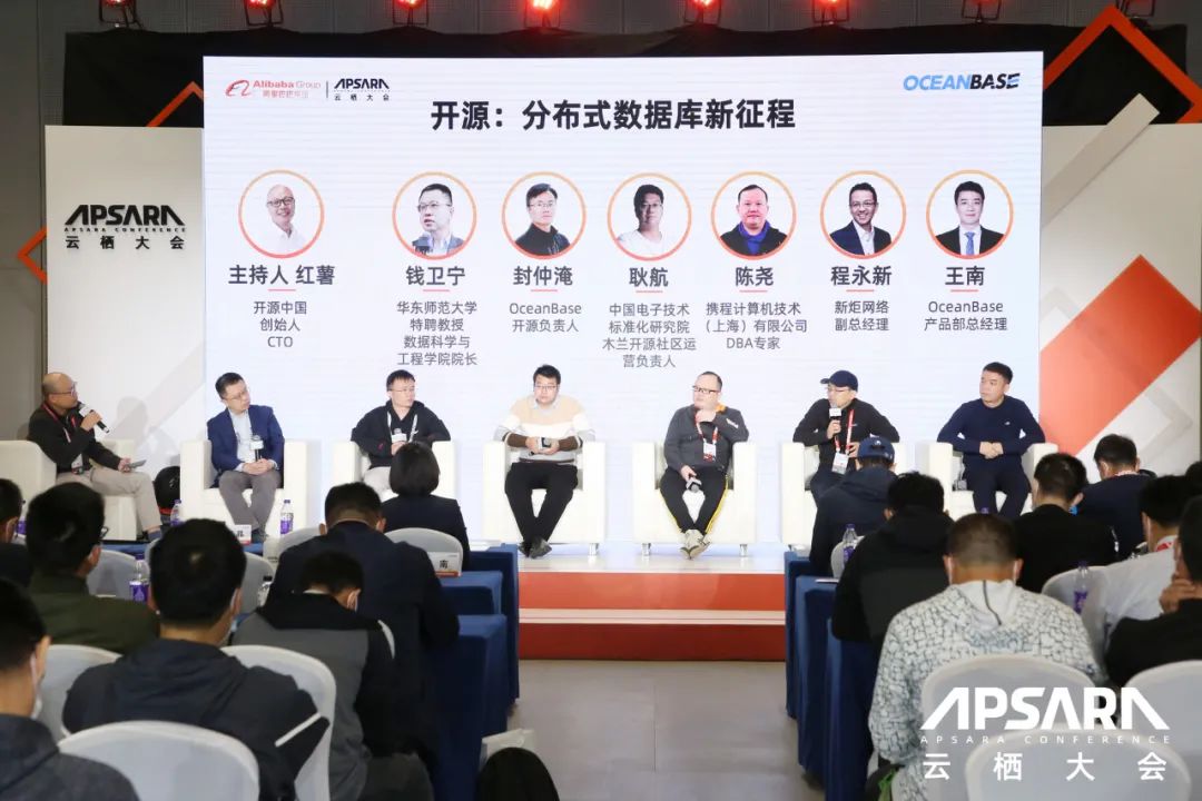 在本场论坛的尾声,开源中国创始人 & CTO 红薯、华东师范大学特聘教授、数据科学与工程学院院长钱卫宁、中国电子技术标准化研究院木兰开源社区运营负责人耿航、携程计算机技术有限公司DBA专家陈尧、新炬网络副总经理程永新、OceanBase 产品部总经理王南为大家贡献了一场精彩纷呈的圆桌对话。