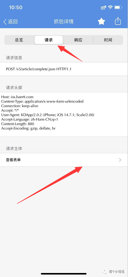 查看抓包记录,搜索 https://ios.baertt.com/v5/article/complete.json