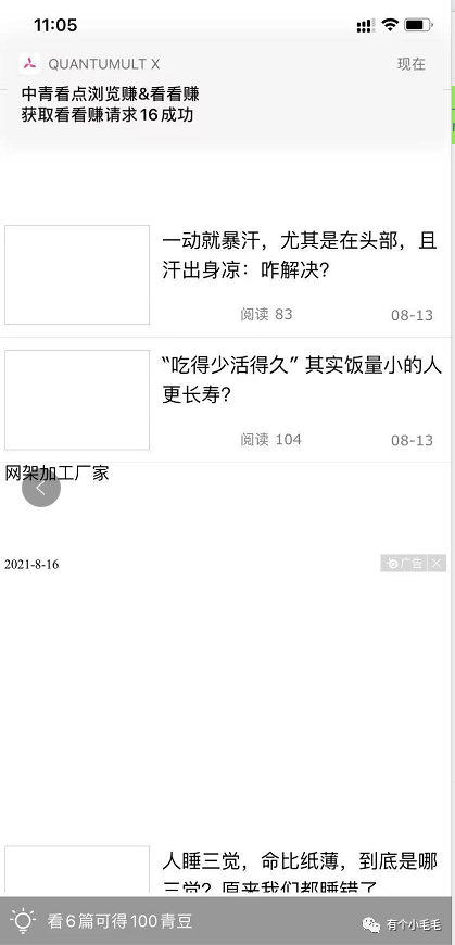 打开中青2.02版本APP随便点一篇文章阅读,等右下角的圆圈转满,然后右下角分享到微信后返回,关闭抓包(我是用stream同理下面放stream的抓包截图)