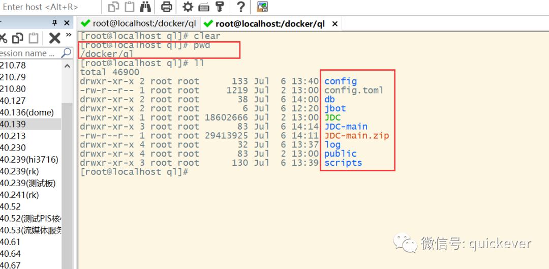 将下载后的 zip 包上传到/docker/ql 目录下并解压