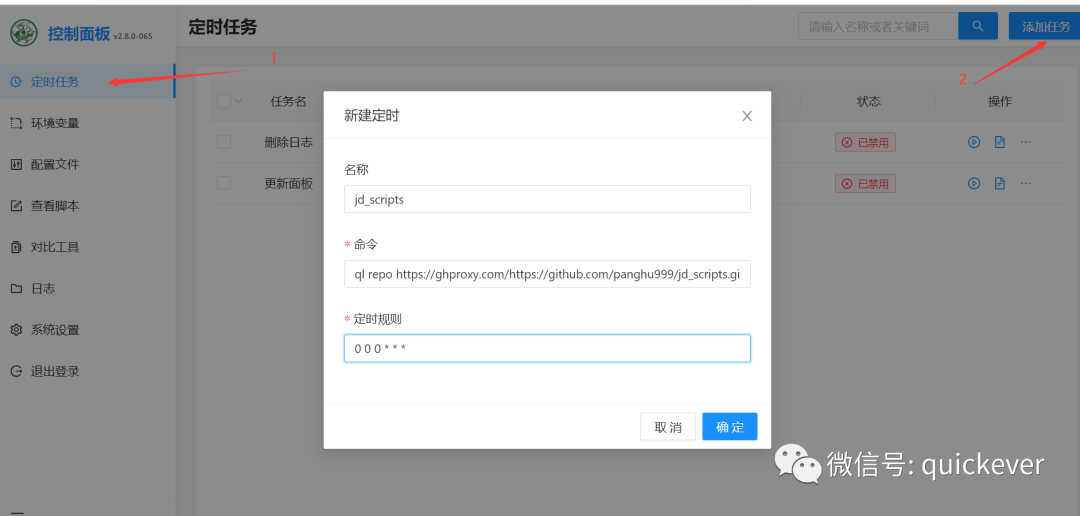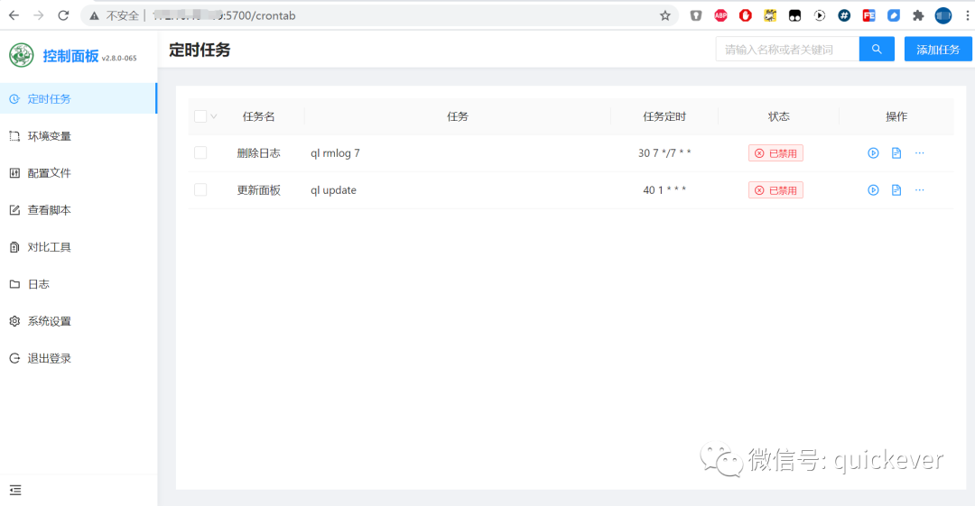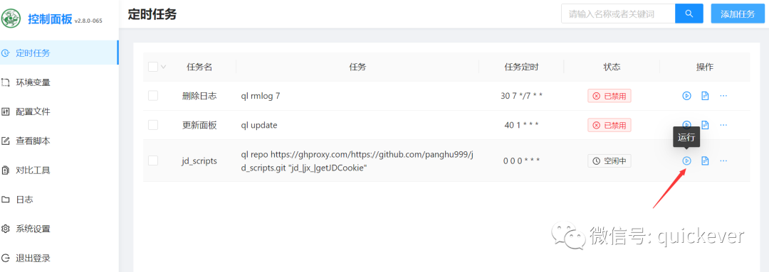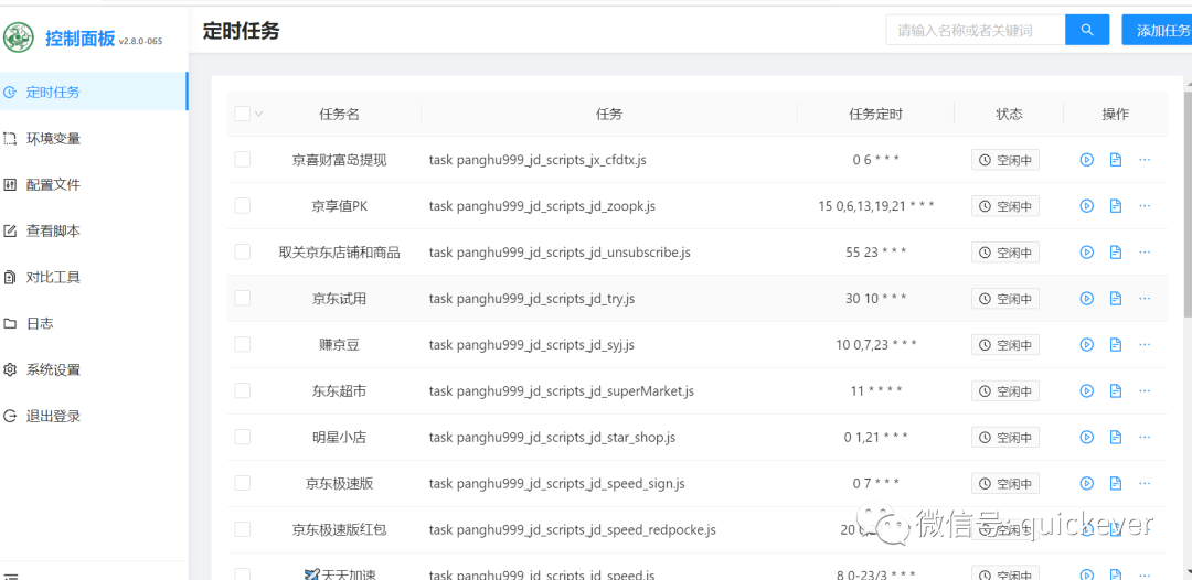 好了,我们的任务也都添加了,那我们的京东账号怎么添加进来呢,下面我们就通过集成 JDC 扫码添加京东账号