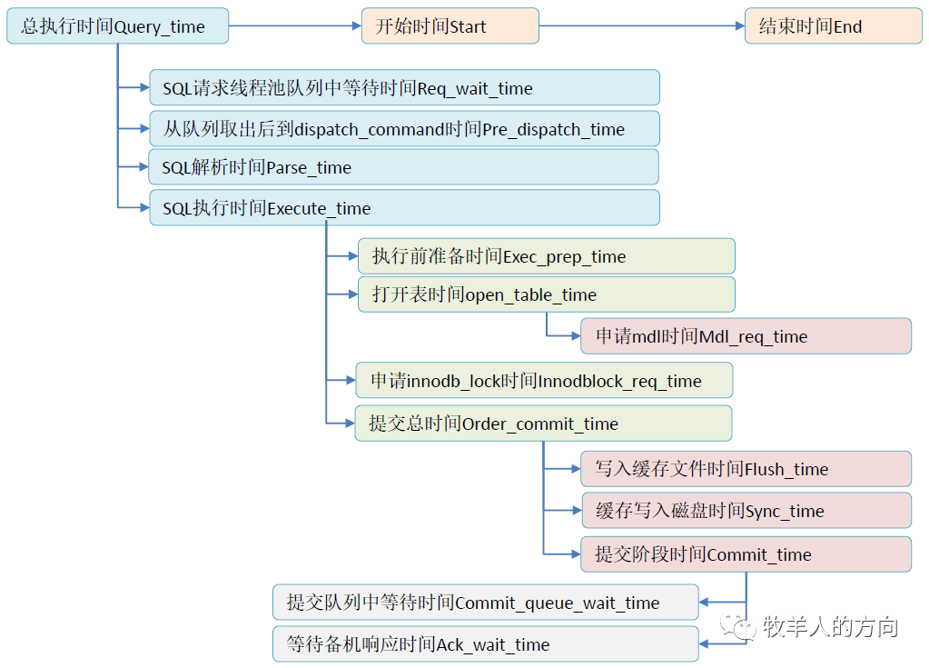 存储引擎提交时间以及等备机响应 这阶段时间慢,很大可能是等待备机响应慢,具体原因可能有:大的binlog事务,网络存在抖动;等待备机响应慢,其Ack_wait_time时间可能较大,也可能不大。