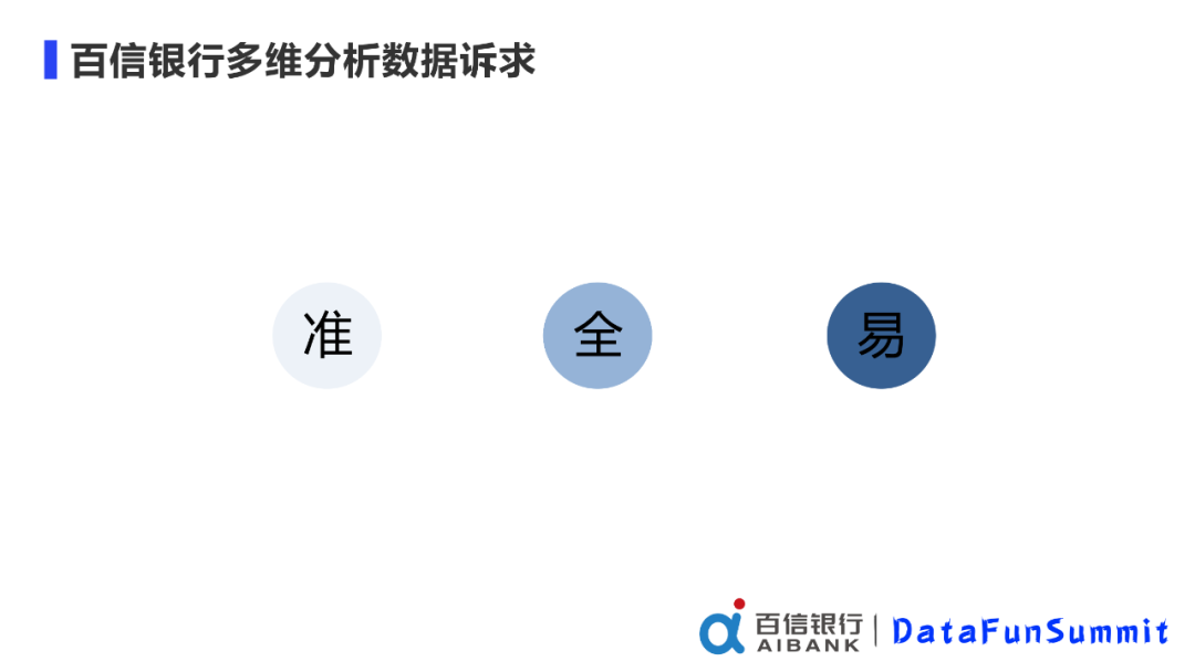 根据与业务的沟通及数据方面的合作,我们将业务对多维分析的数据诉求抽象为三点:准、全、易。