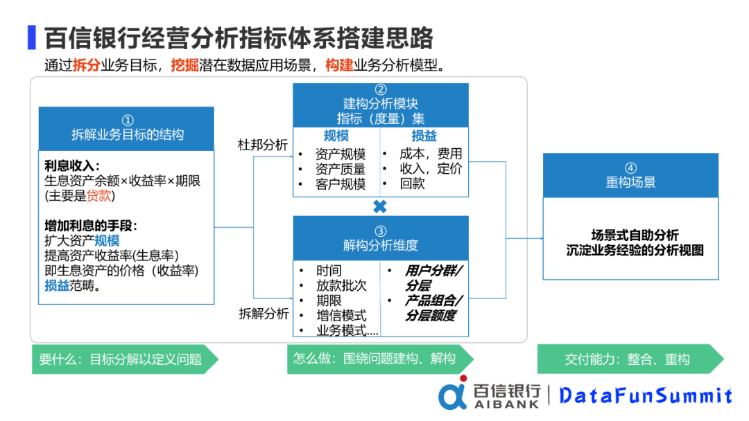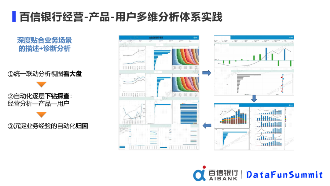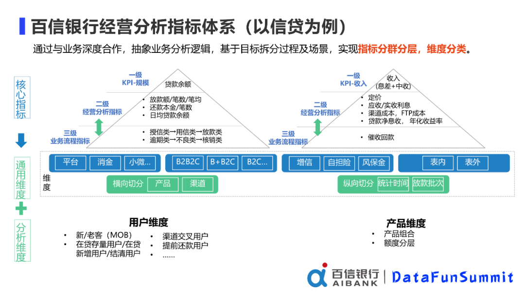 接下来结合百信银行数据产品建设实践,通过用户-产品-企业经营分析场景探讨上述分析思路的落地。