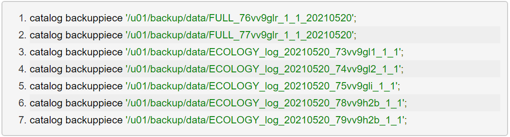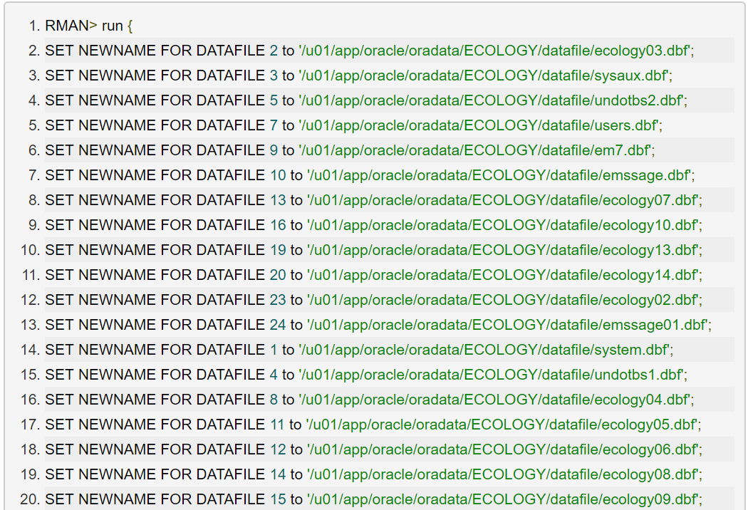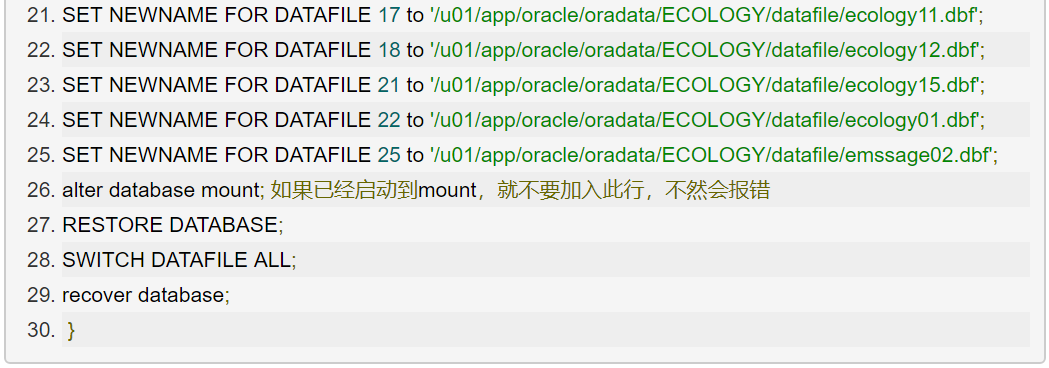 执行list backup of database; 根据备份信息,进行文件重命名。Oracle rac 环境使用的是ASM管理磁盘,目录与单机oracle不同,因此在还原恢复时候,需要先将备份文件的ASM文件路径,修改为Oracle单机环境路径。