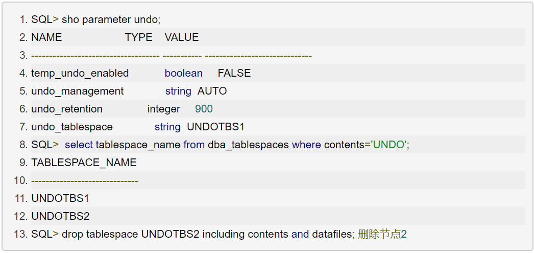 查看undo表空间,并删除节点2(在此不使用)的undo表空间