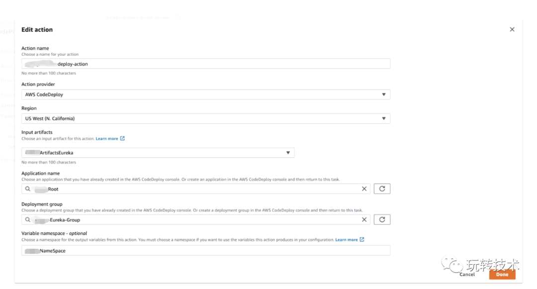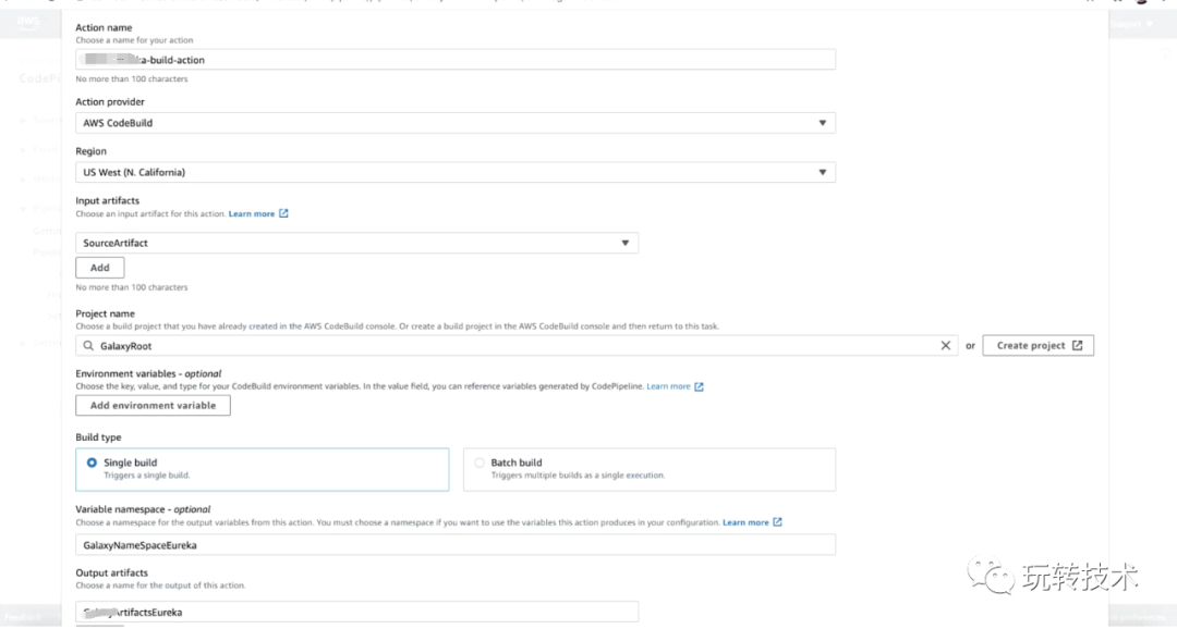 Output artifacts "定义codepipline输出的下一步源名称,下一个目标引用(下面会看到)"
