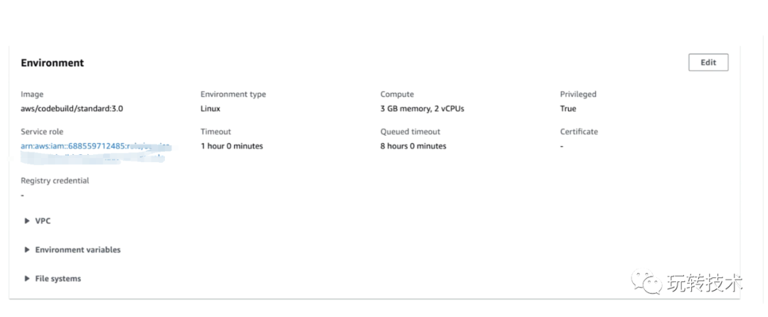 Service role "权限角色需要codepipline、codebuild权限,iam创建,这里不在介绍"