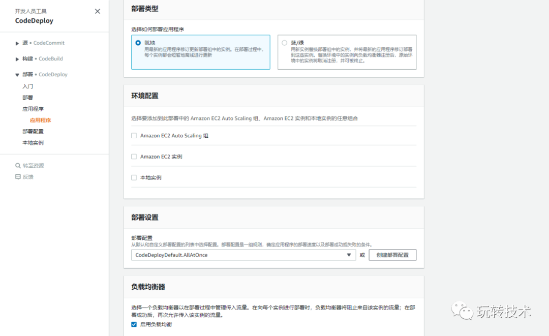 选择部署方式,就地还是蓝绿,蓝绿需要使用ELB