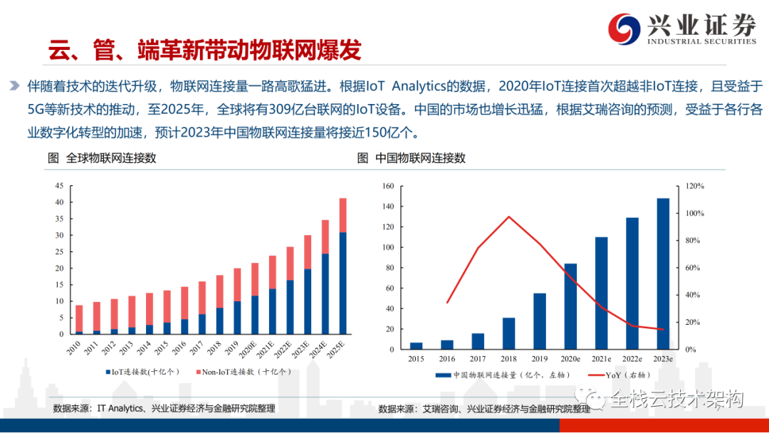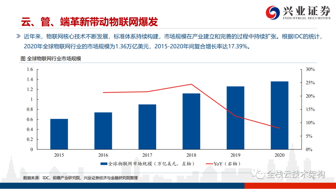 物联网通过智能感知、识别技术与普适计算等通信感知技术,广泛应用于网络的融合中,也因此被称为继计算机、互联网之后世界信息产业发展的第三次浪潮。1、云管端的硬件升级