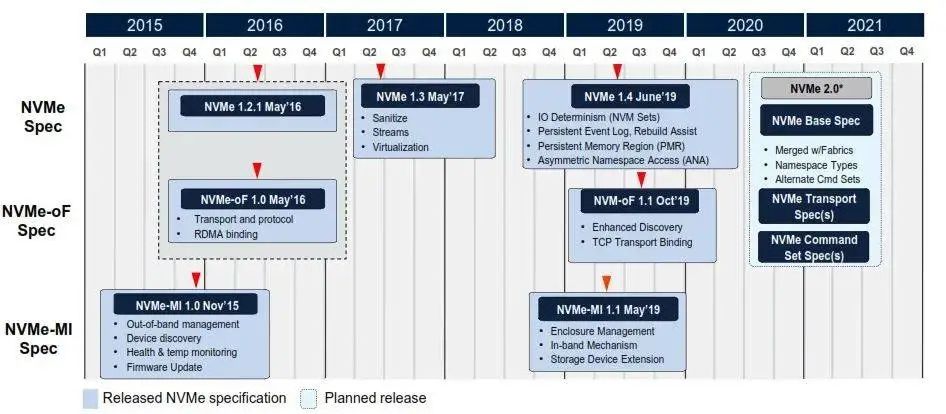随着存储介质从 HDD 发展到 SSD,存储高性能吞吐与 SCSI 协议传输较低性能吞吐之间的矛盾日益严重,从而出现了 NVMe 存储协议。NVMe 规范了 SSD 访问接口,简化了协议复杂性,充分利用 PCIe(Peripheral Component Interconnect Express)通道的低延时以及并行性,利用多核处理器,通过降低协议交互时延,增加协议并发能力,并且精简操作系统协议堆栈,显著提高了 SSD 的读写性能。