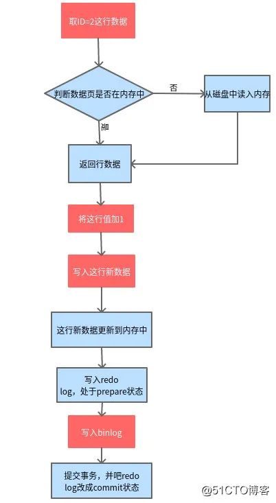 更新流程如图所示:红色为在执行器中执行,蓝色在 InnoDB 内部执行