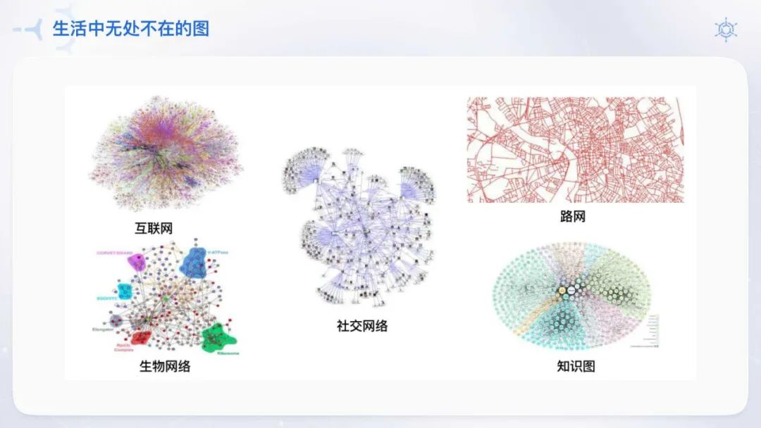 图无处不在,在我们的日常生活中,各行各业、生物基因等,都可以用知识图谱来组织数据,抽取信息,形成专属的认知和知识。