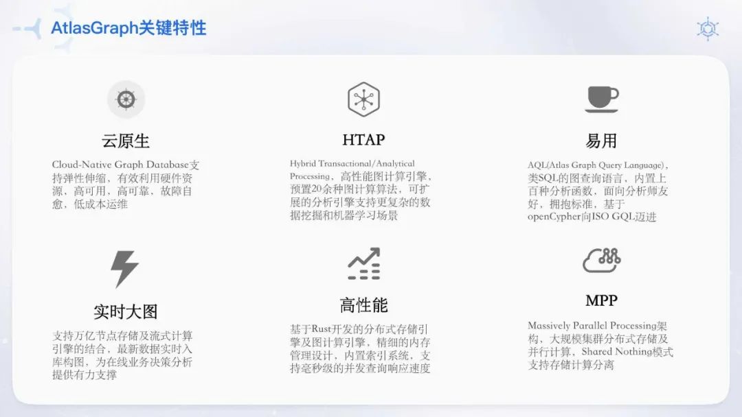 他表示,Atlas Graph能够满足金融机构对图数据库的特性要求,三个字总结就是“信、达、雅”。