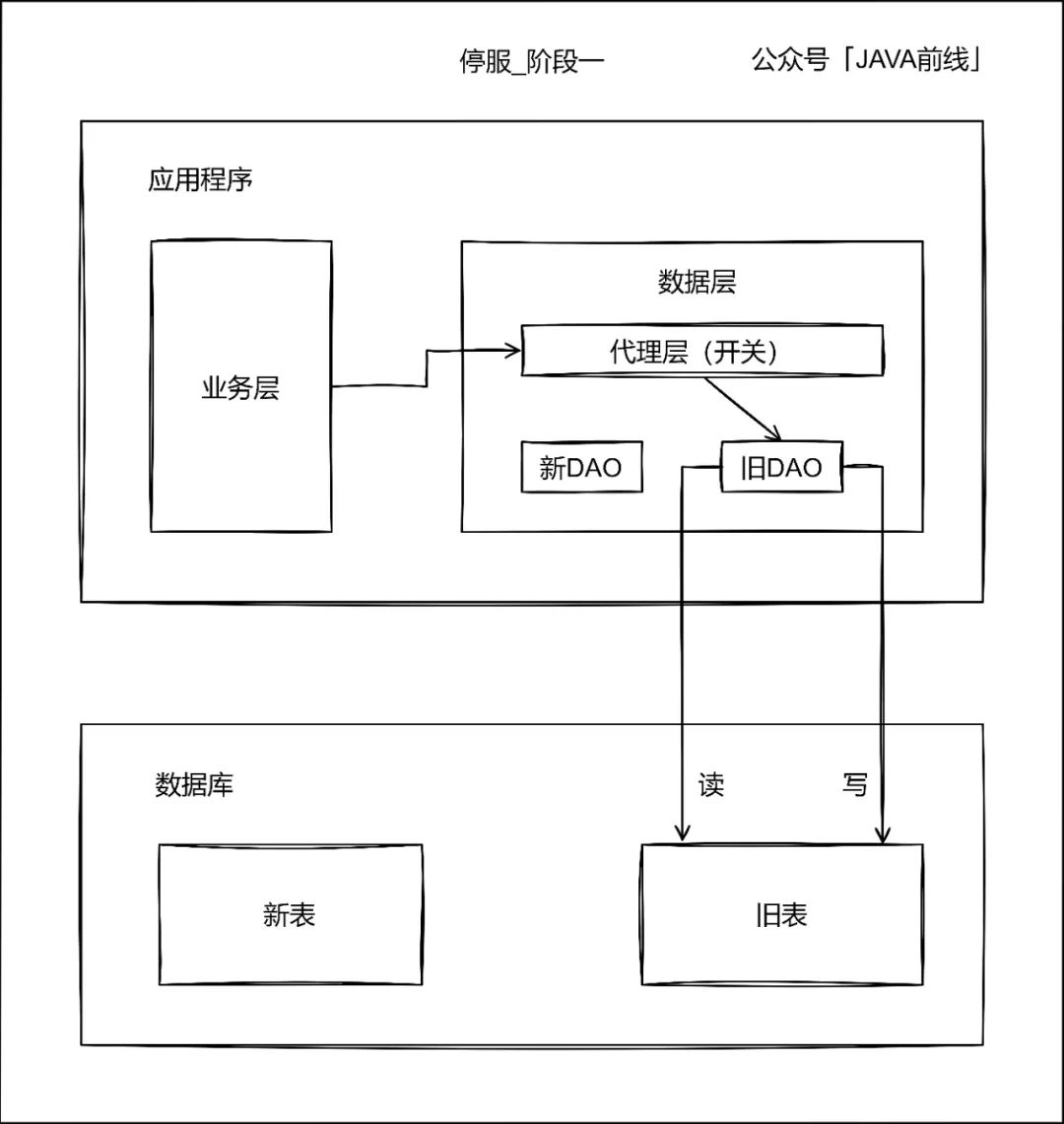 第一阶段首先编写代理层和新DAO,代理层通过动态开关决定访问旧表还是新表,此时流量还是全部访问旧表: