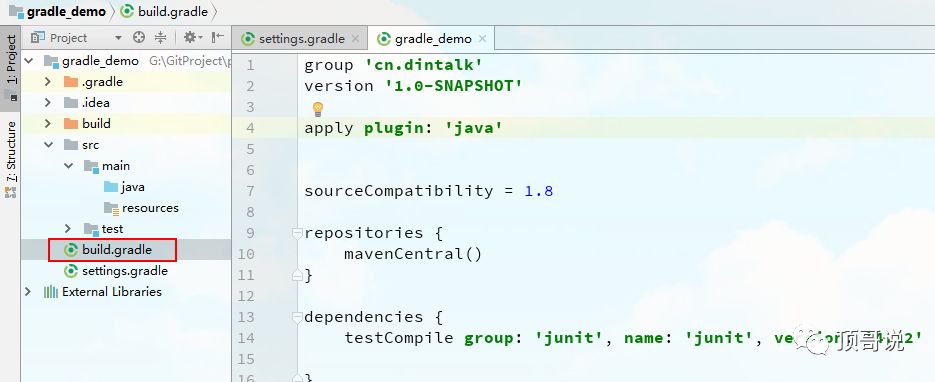如图,gradle的工程目录结构和Maven的工程目录结构差别不是很大,其中build.gradle文件相当于Maven的pom.xml文件。也有group和version的配置。