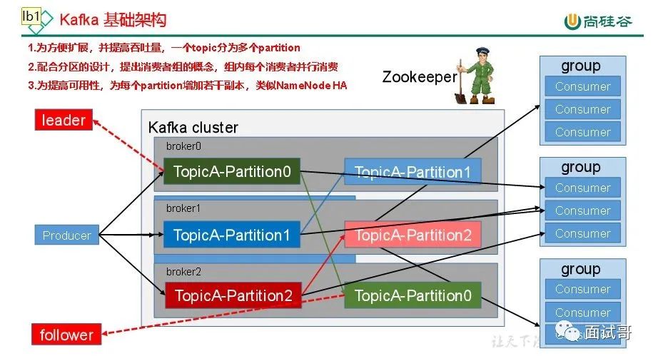 8)leader:每个分区多个副本的“主”,生产者发送数据的对象,以及消费者消费数据的对象都是leader。