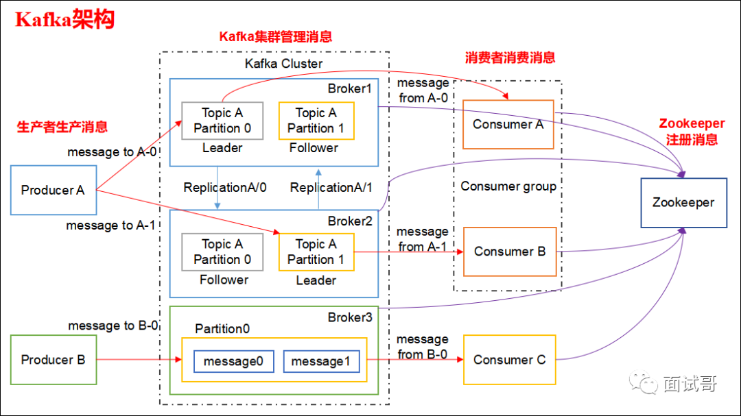 Consumer Group:这是 kafka 用来实现一个 topic 消息的广播(发给所有的 consumer)和单播(发给任意一个 consumer)的手段。一个 topic 可以有多个 Consumer Group。