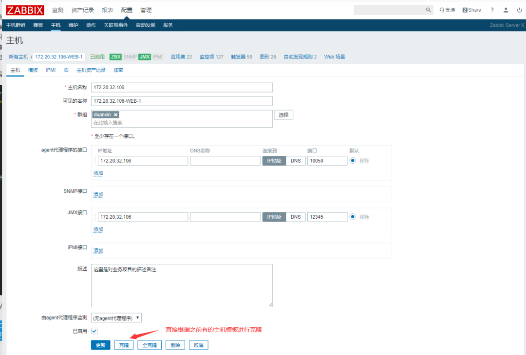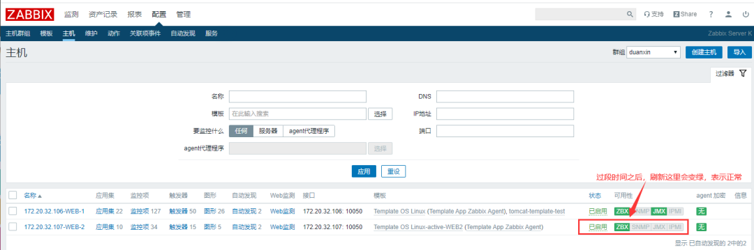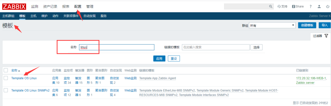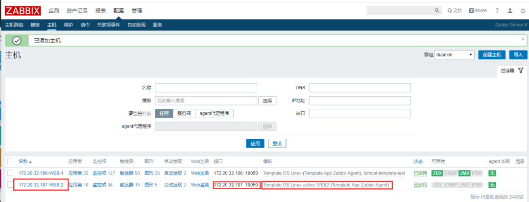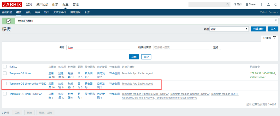 把做好的主动模板关联到主机172.20.32.107的WEB-2的主机中