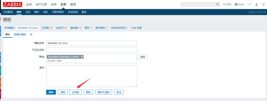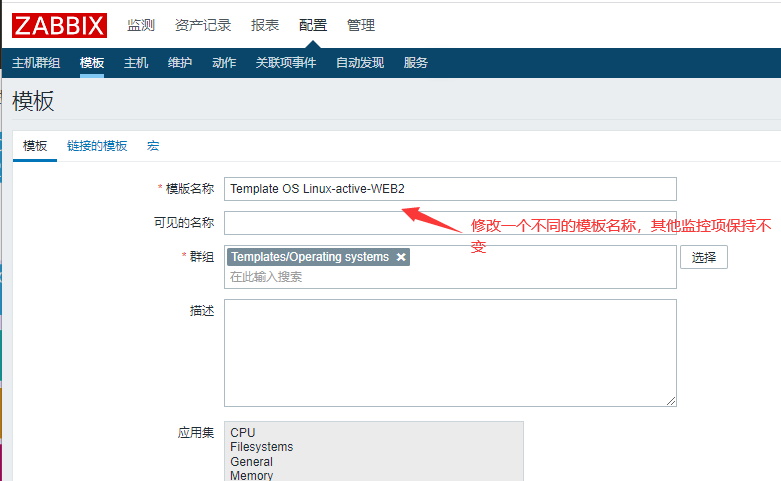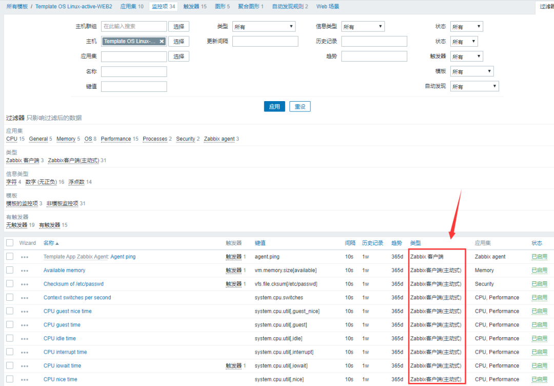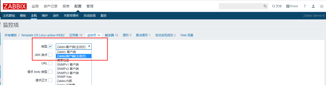 对 Template OS Linux-active-WEB2 模板的监控项进行对应的修改,点击 监控项
