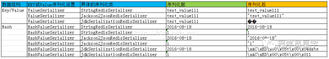 幸运的是找到了一张关于不同序列化方式会产生不同结果的表。能更直观的反映差距。