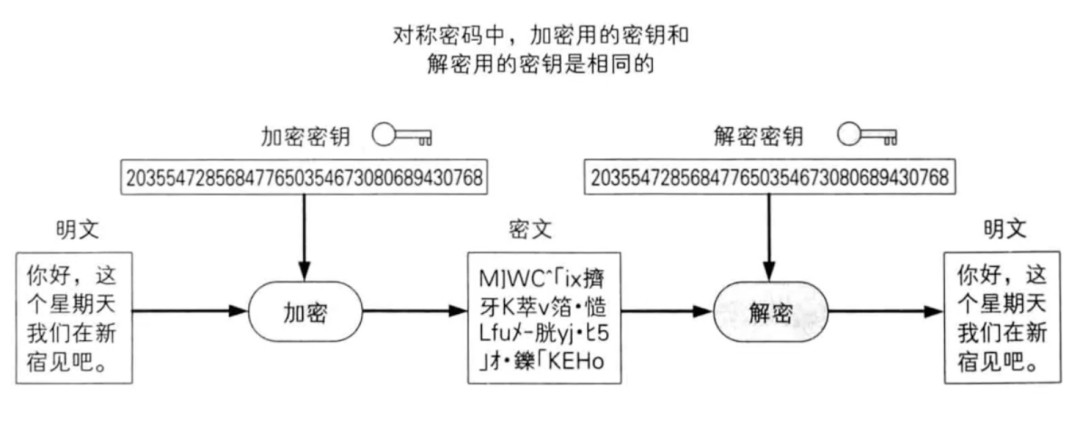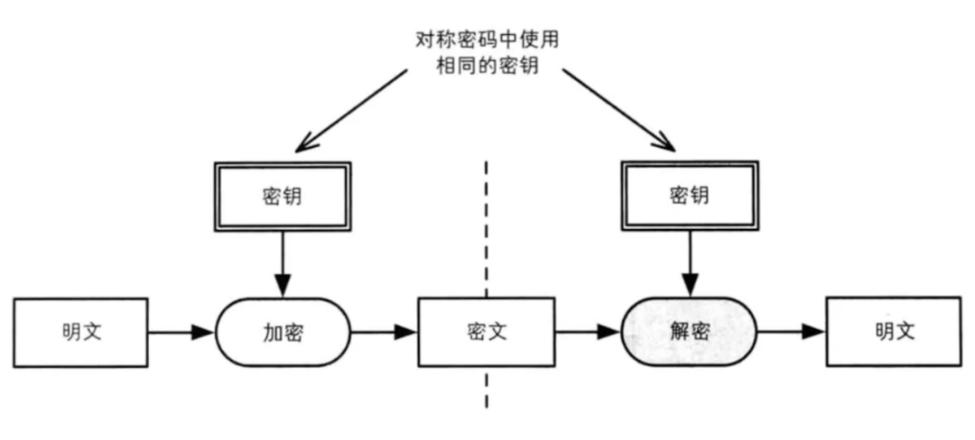 在对称加密中(也叫对称密码),加密和解密使用的是同一个密钥。