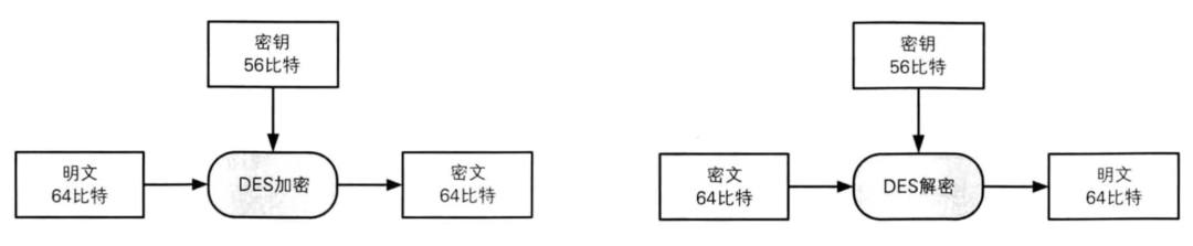 DES是一种将64bit明文加密成64bit密文的对称加密算法,密钥长度是56bit。