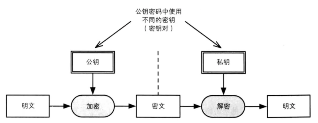 加密密钥:一般是公开的,因此该密钥称为公钥(public key)。因此,非对称加密也被称为公钥密码(Public-key Cryptography)。