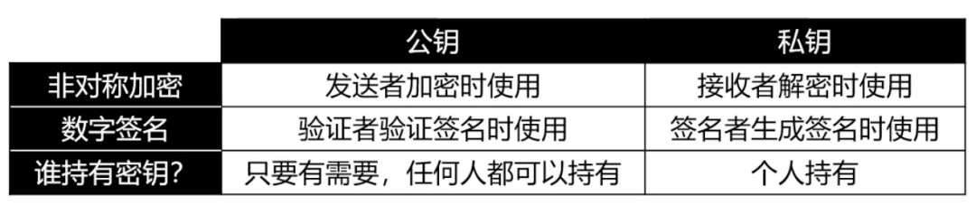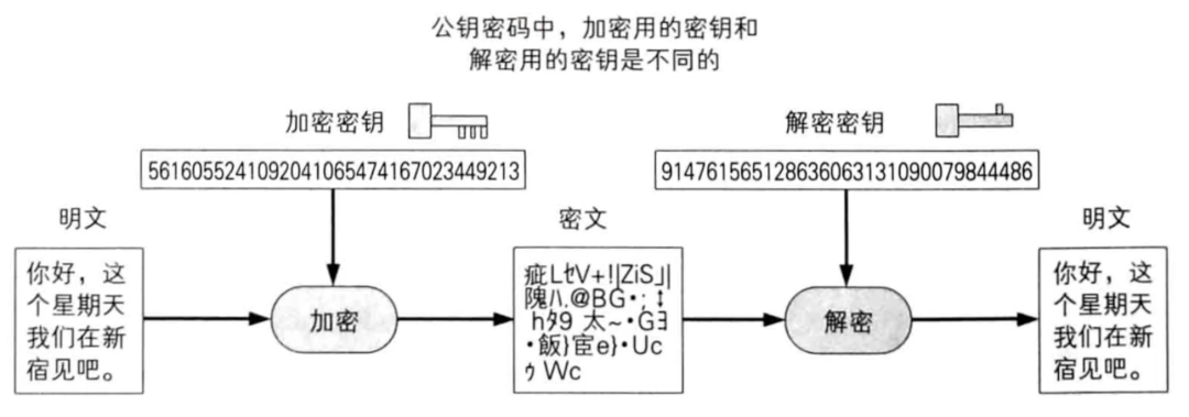 在非对称加密(Asymmetric Cryptography)中,密钥分为加密密钥、解密密钥2种,它们并不是同一个密钥。