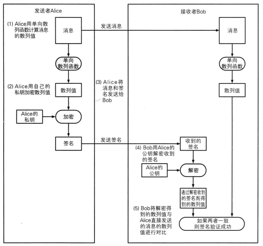 由于非对称加密速度比较慢,当消息体量比较大时效率就会下降,所以可以利用单向散列函数对其过程进行改进(对散列值进行加密解密,然后比较散列值):