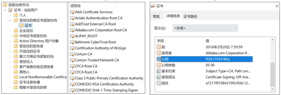 各大CA的公钥,默认已经内置在浏览器和操作系统中。