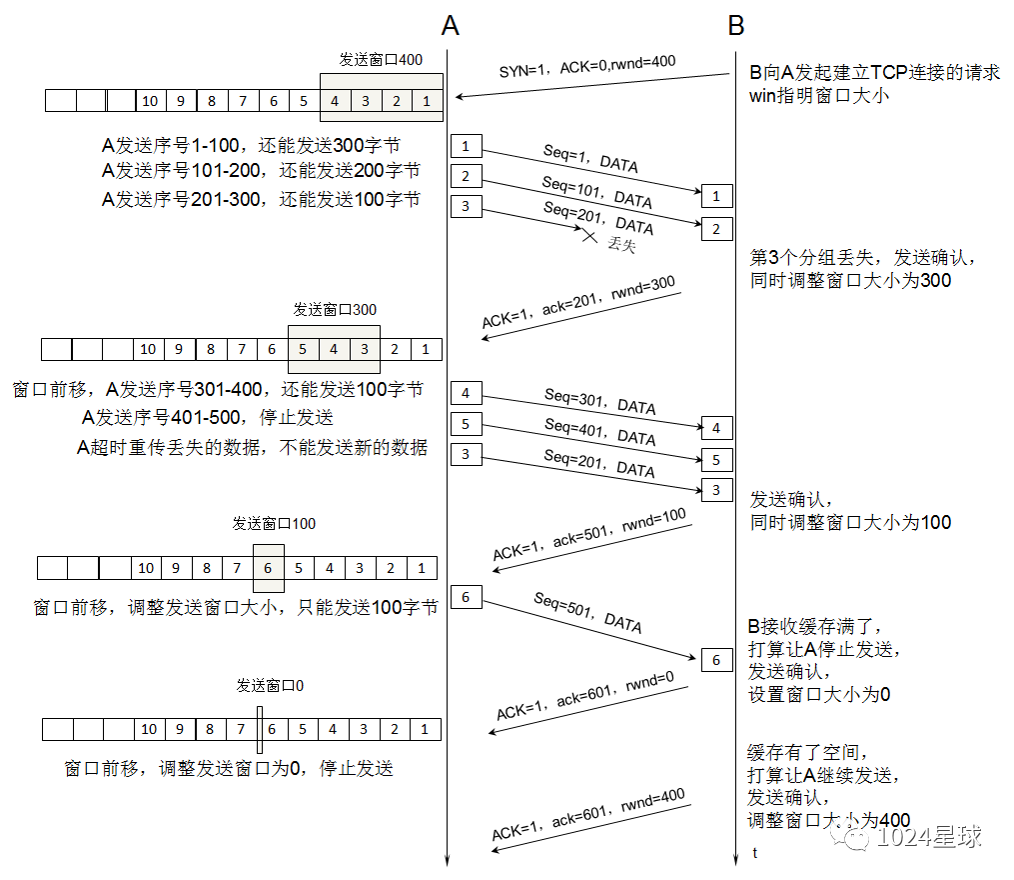 原理:通过确认报文中窗口字段来控制发送方的发送速率;发送方的发送窗口大小不能超过接收方给出的窗口大小;当发送方收到接收窗口的大小为0时,发送方就会停止发送数据。